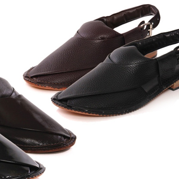 Made according to a traditional Peshawari design, these sandals feature leather lining and sole along with a small block heel
