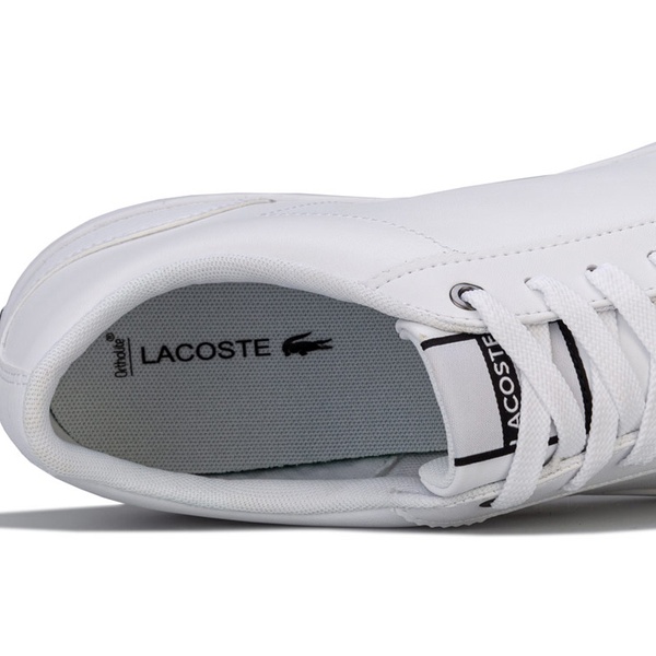 These Lacoste trainers in white feature leather upper, low-profile cut and lace-up design, ideal with sporty, casual or semi-formal outfits