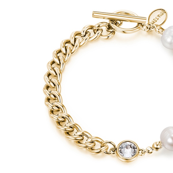 - Swarovski® Crystals accentuated by luminescent freshwater pearls