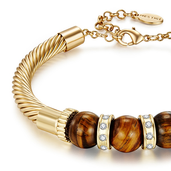 - Features three 10mm Natural Tiger Eye Stones and 16 2mm Swarovski® Crystals
