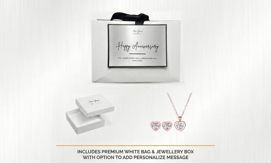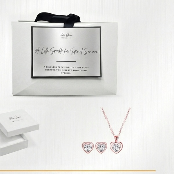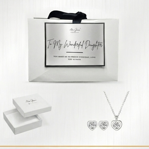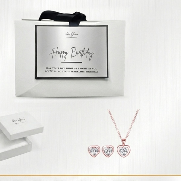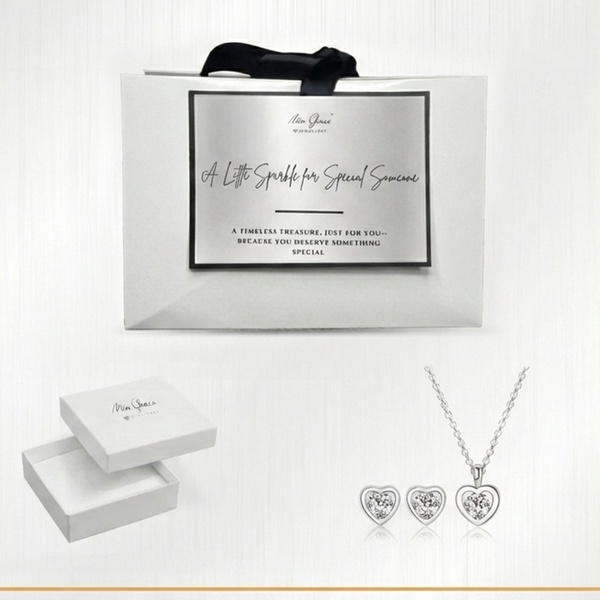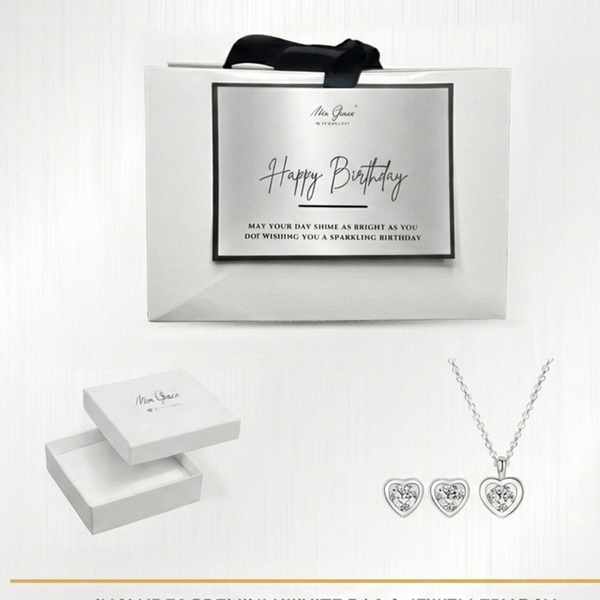 This exquisite matching set features 8mm and 3mm Austrian crystals set in a sophisticated heart design; ideal for any occasion, it comes complete with a premium white gift box, bag, and customisable message tag