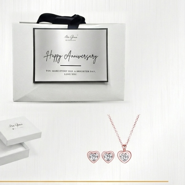 • Elegant matching jewellery set featuring a heart design set with high-clarity 8mm and 3mm Austrian crystals