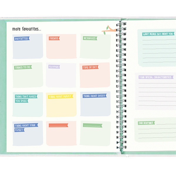 - Spaces to include over 40 pictures, write in the birth story and all of baby’s firsts including holidays