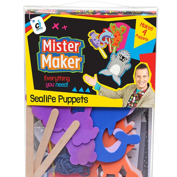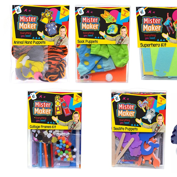 - Kit contents: Mister Maker sock puppets | Mister Maker superhero kit | Mister Maker collage frames kit | Mister Maker animal hand puppets | Mister Maker sealife puppets