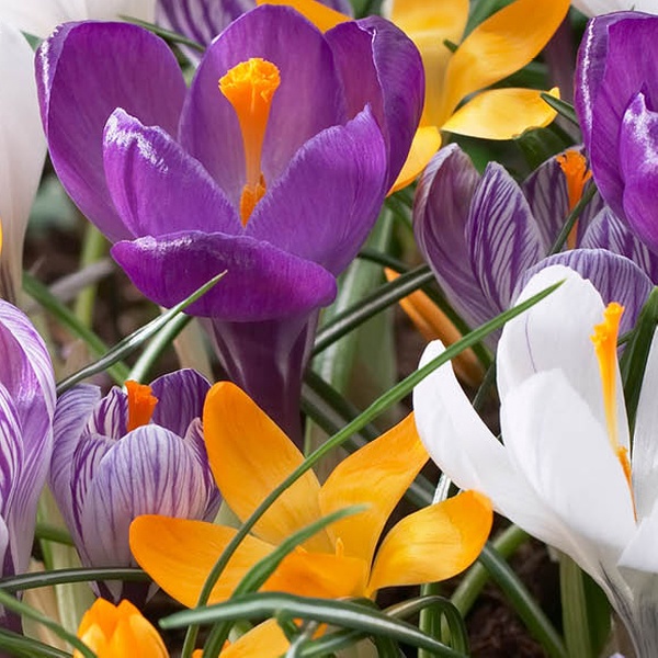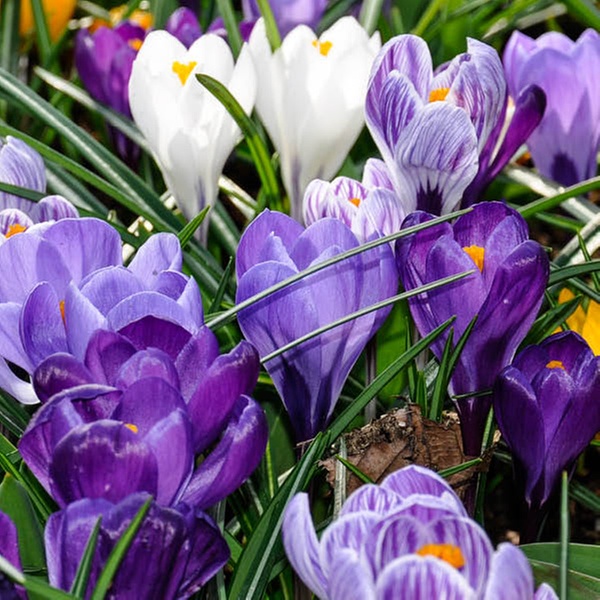 Brighten any space with a delightful mix of vibrant crocus blooms, thriving effortlessly from early spring sunshine