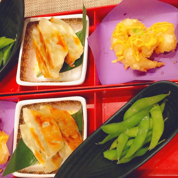Second course may include: edamame | spicy edamame | vegetable or chicken gyoza | tori kara age