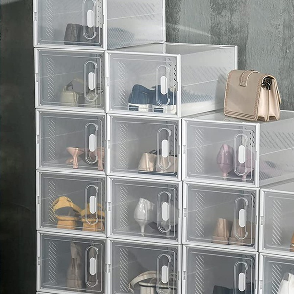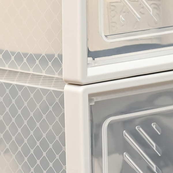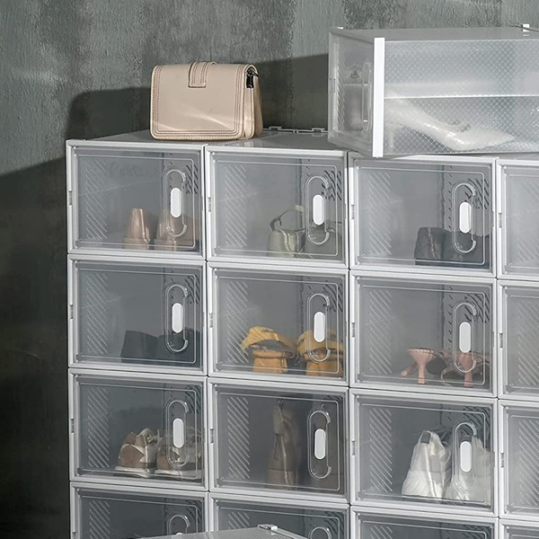 Featuring a stackable design and magnetic doors, this shoe box storage unit can be ideal to store shoes, toys and collections