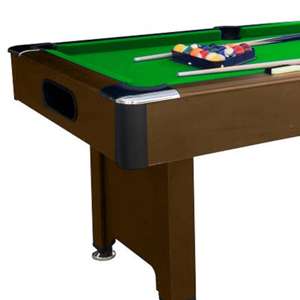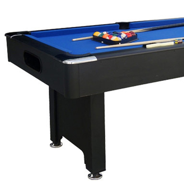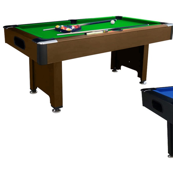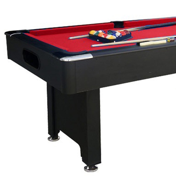 Featuring adjustable feet and detachable legs, this pool table includes a set of pool balls, a triangle, two cues and two pieces of chalk