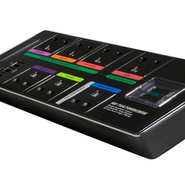 This surge protector features colour-coded sockets with matching cord labels for easy identification and a mountable design