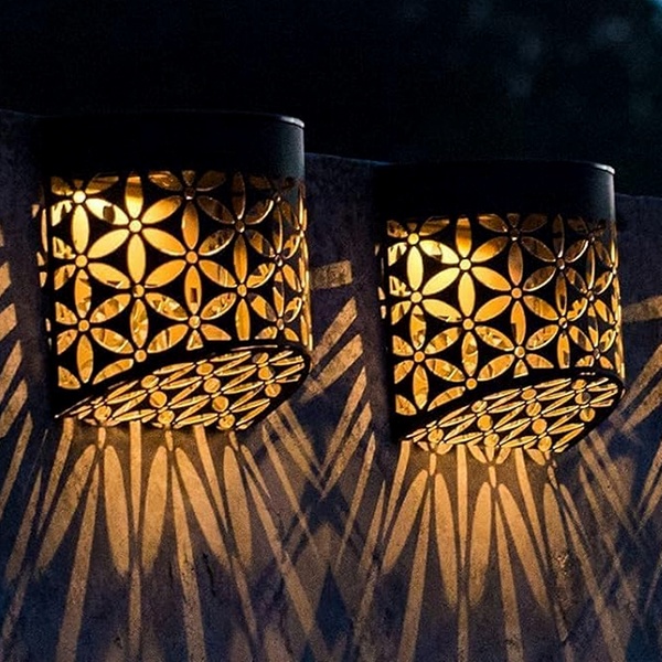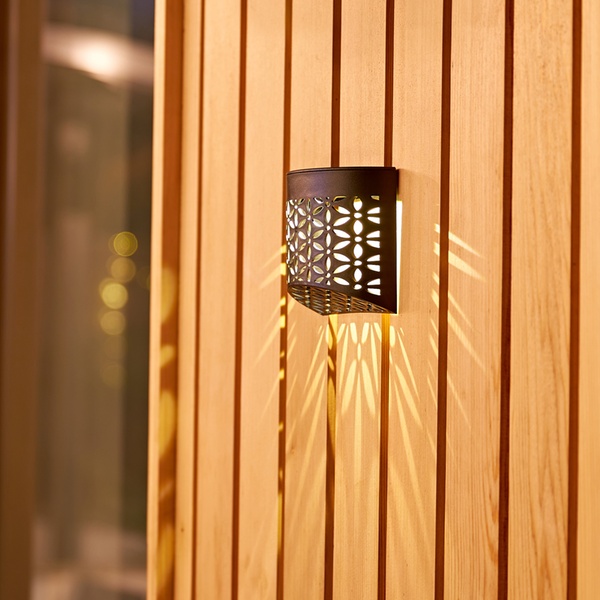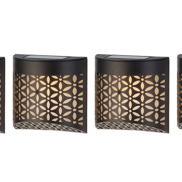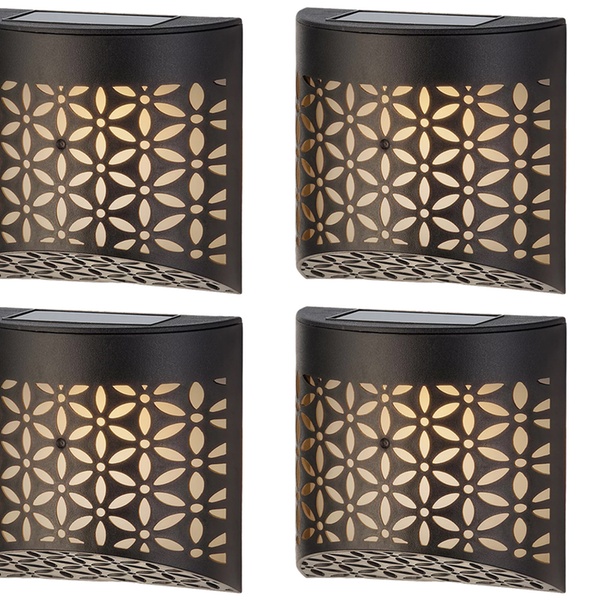Bring charm and ambience to the outdoor space with this four-pack of Moroccan-style solar wall lights, featuring an elegant cut-out design, warm white LED glow, and weatherproof solar-powered construction ideal for fences, patios, and garden walls, creating a cosy atmosphere effortlessly