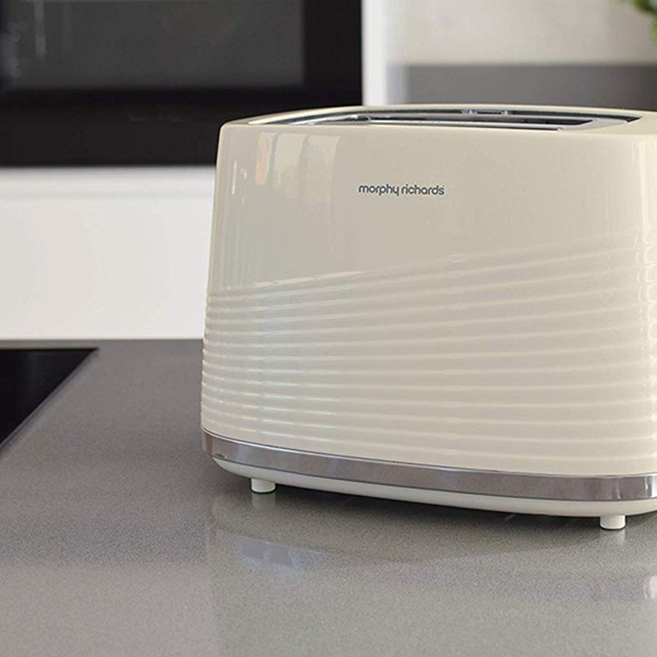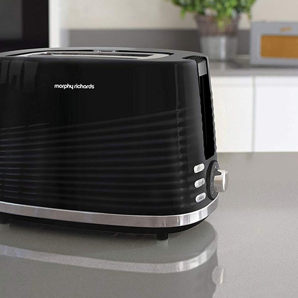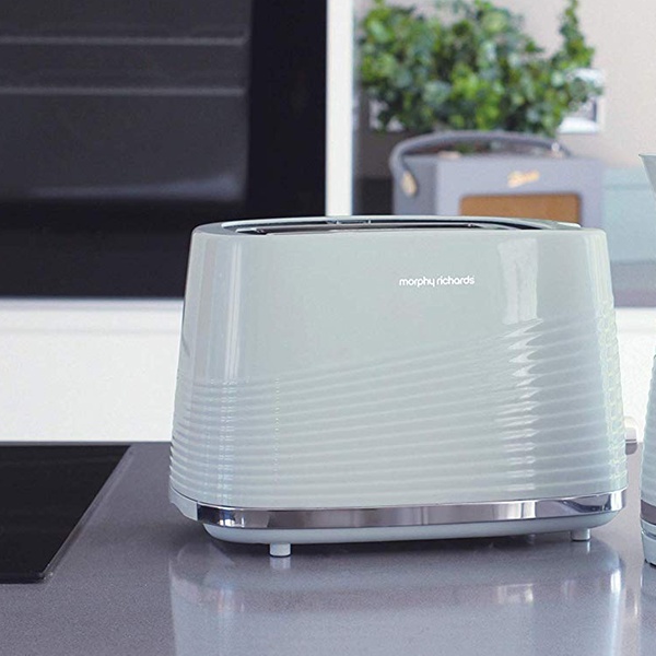 Add a touch of style to the kitchen with this two-slice toaster and jug kettle set featuring glossy finish and cord storage