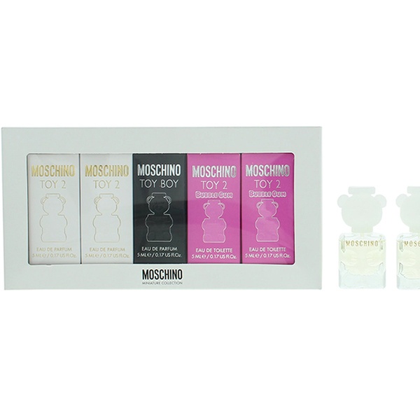 Celebrate Moschino’s iconic creativity with this charming 5-piece mini fragrance set, featuring Toy Boy, Toy 2, and Toy 2 Bubble Gum in adorable teddy-bear bottles.