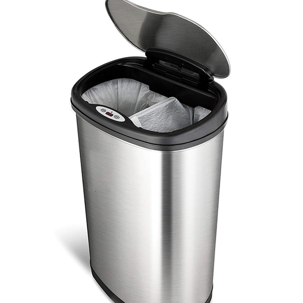 - Fingerprint-resistant stainless steel base helps keep the can clean