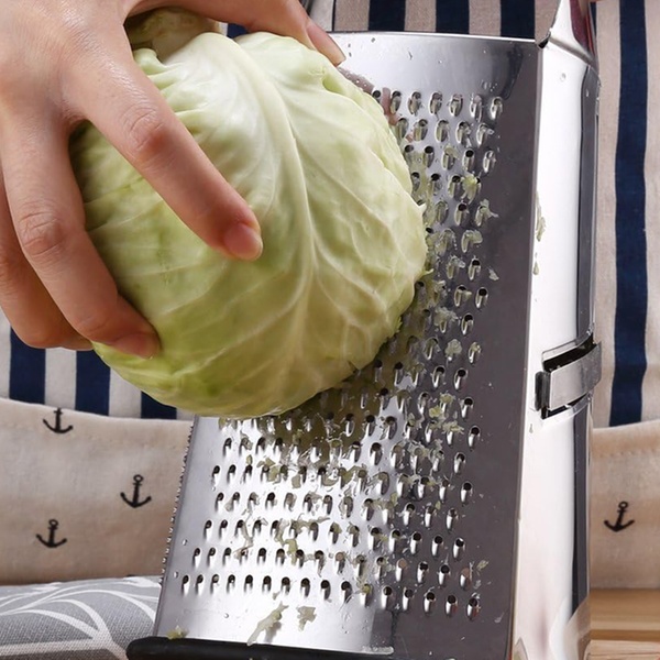 Featuring a Four Sided Design, this grater offers versatile blade options for effortlessly preparing all types of ingredients.