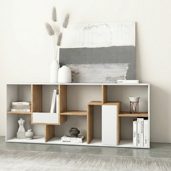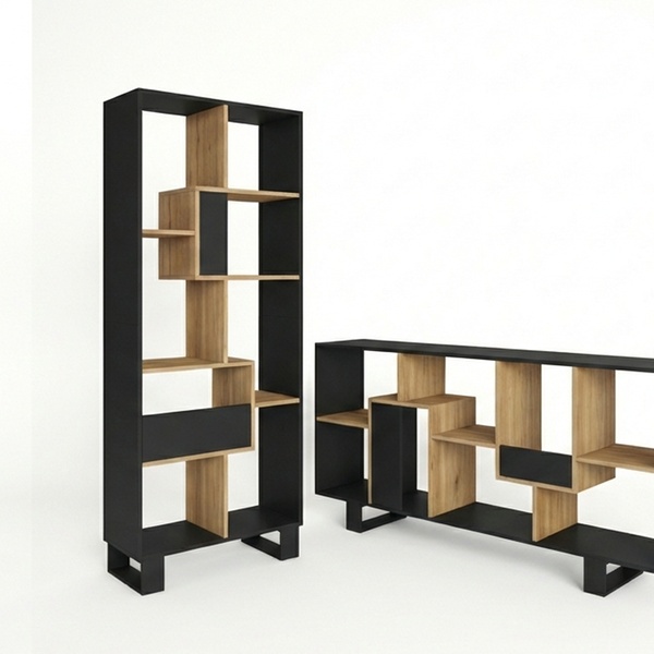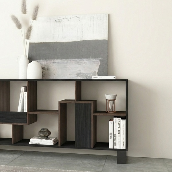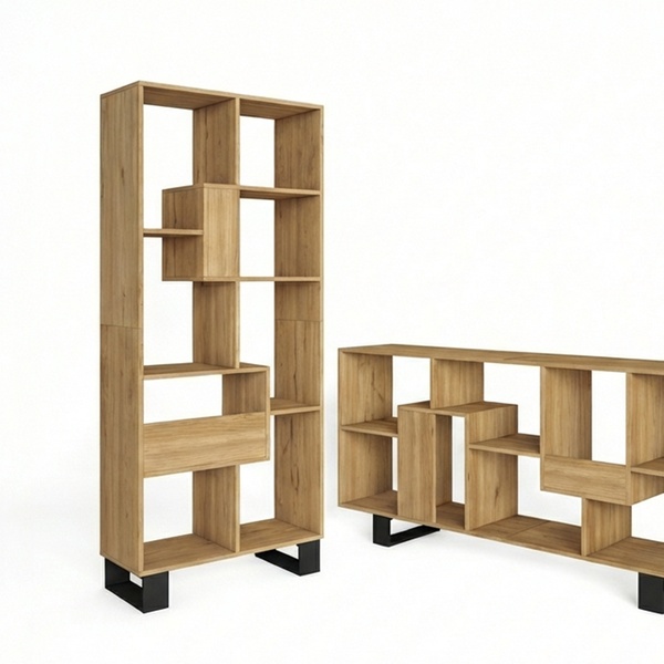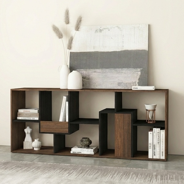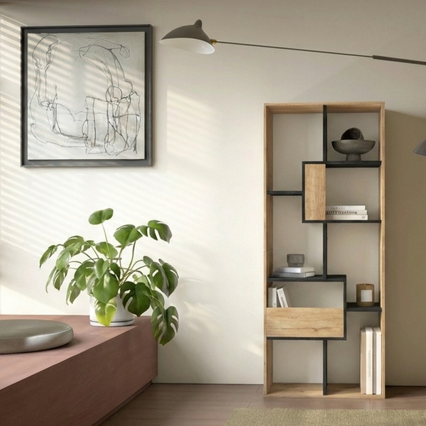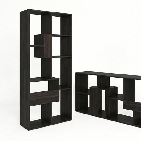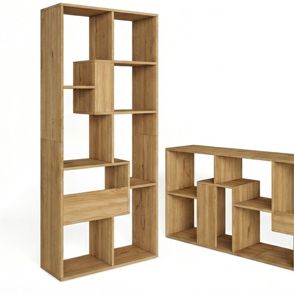 Crafted with a unique geometric design, this bookcase adds a modern touch to any room while maximizing storage space