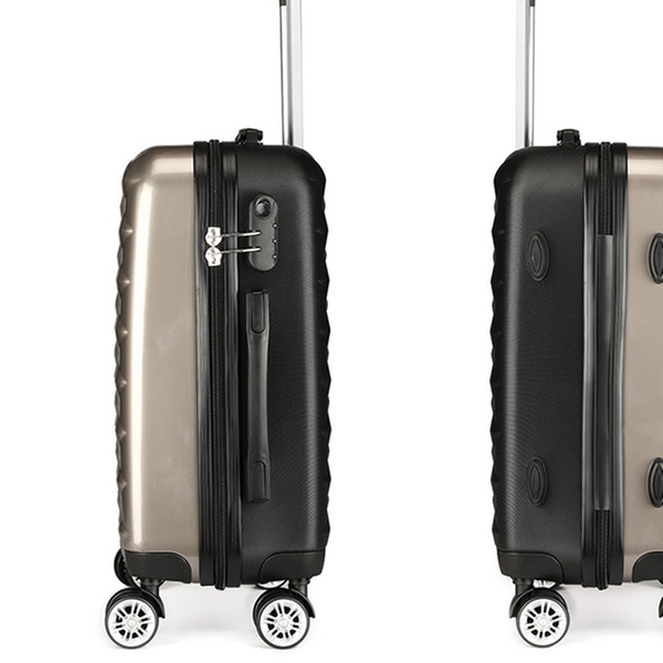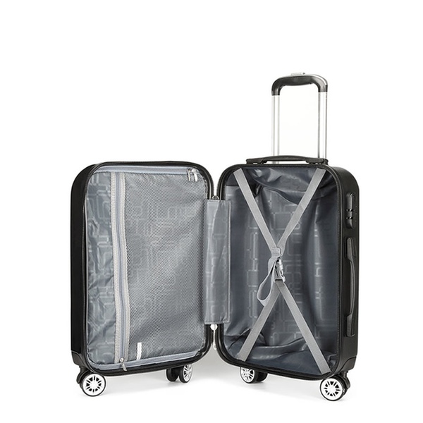 Tough ABS shell and 4 x 360° swivel wheels make this cabin suitcase both stylish and easy to maneuver through crowded terminals