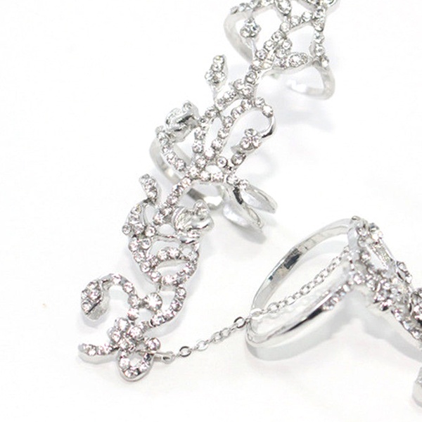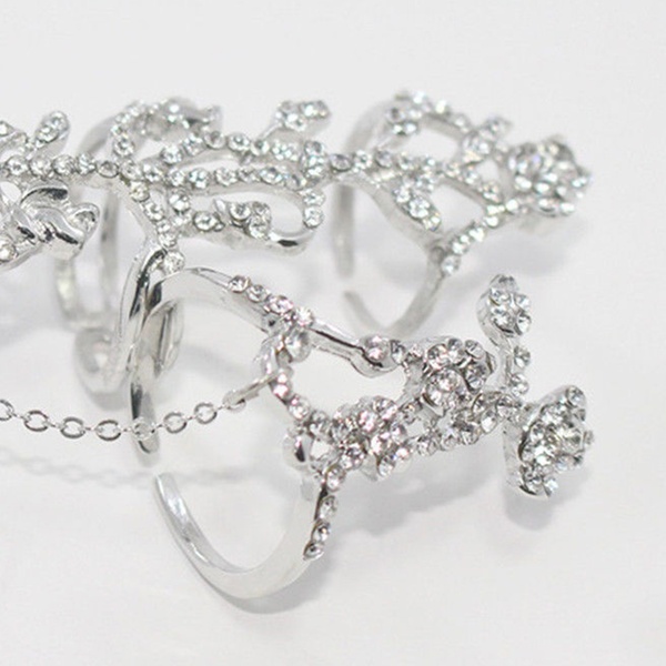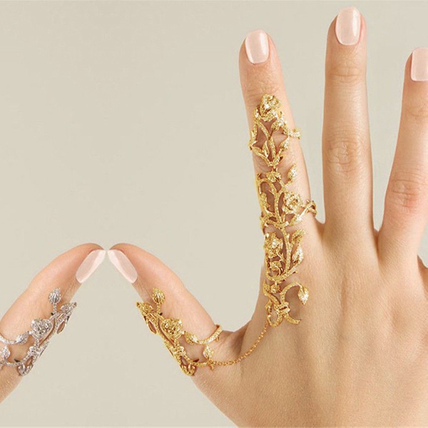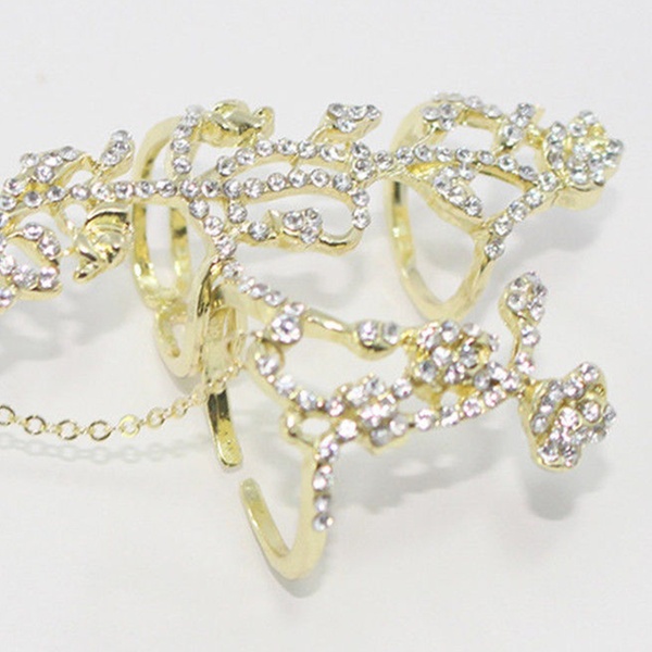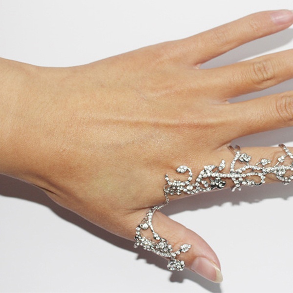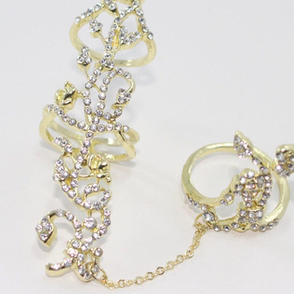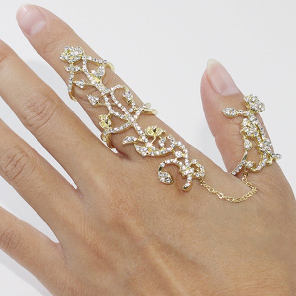 These glittery stacked rings are designed to adorn two fingers at a time and add the final touch to almost any feminine outfit