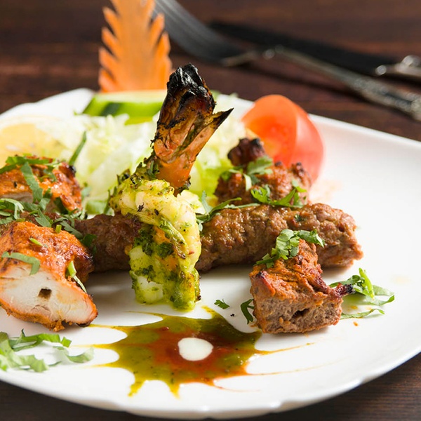 - Menu may include: chicken, lamb or salmon tikka | sheek kebab | prawn purée | lamb rogan josh | tandoori king prawn biryani | pilau rice | mushroom bhaji