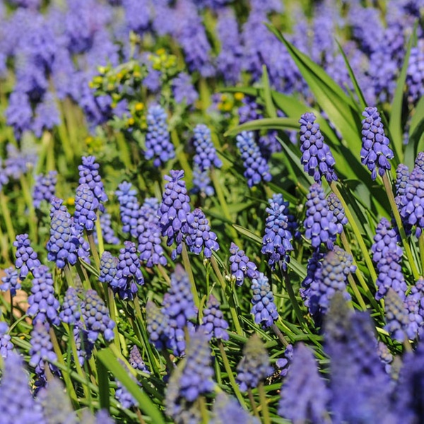 - Classic spring bulb, produces tight spikes of vivid blue flowers from April to May