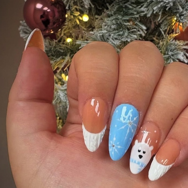 • Hard Gel Extensions with Festive Art Long-lasting and dramatic—perfect for special events or Christmas parties.