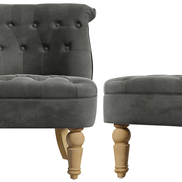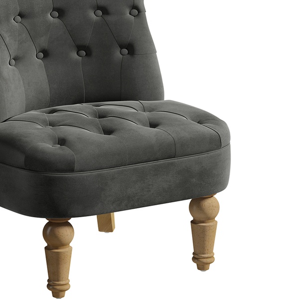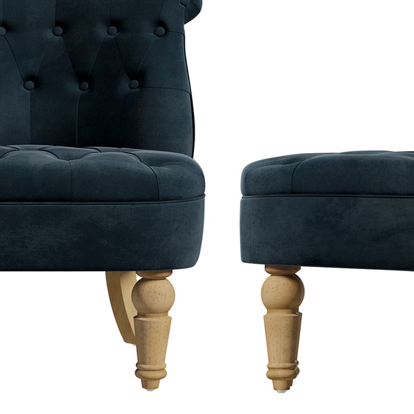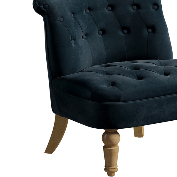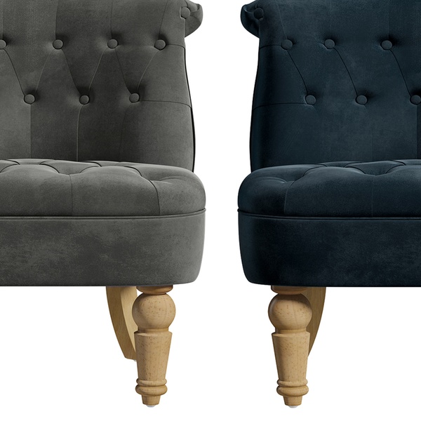 - Upholstered in two colours: grey velvet, or midnight blue