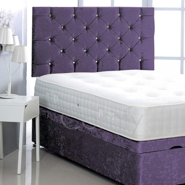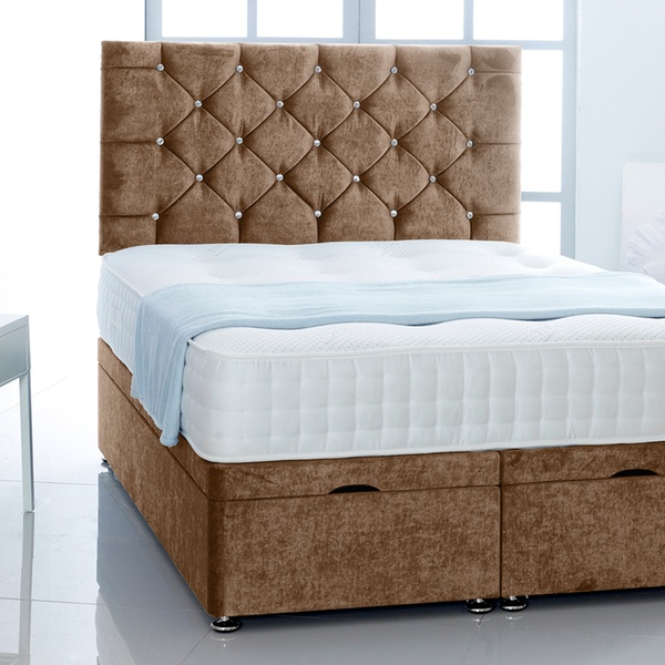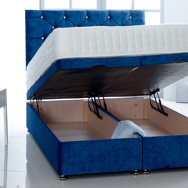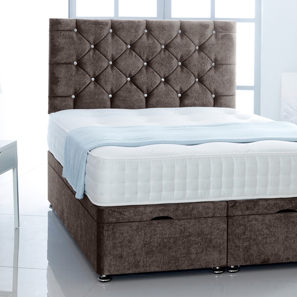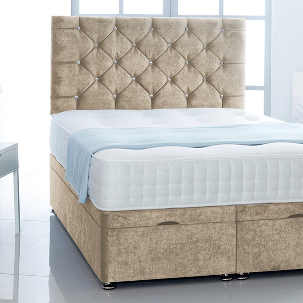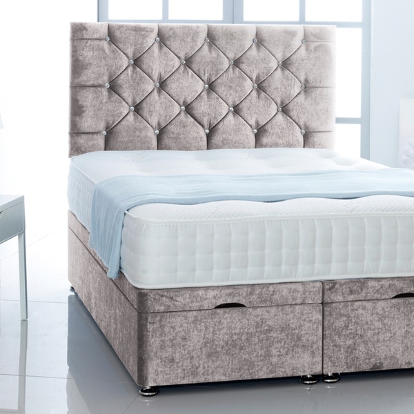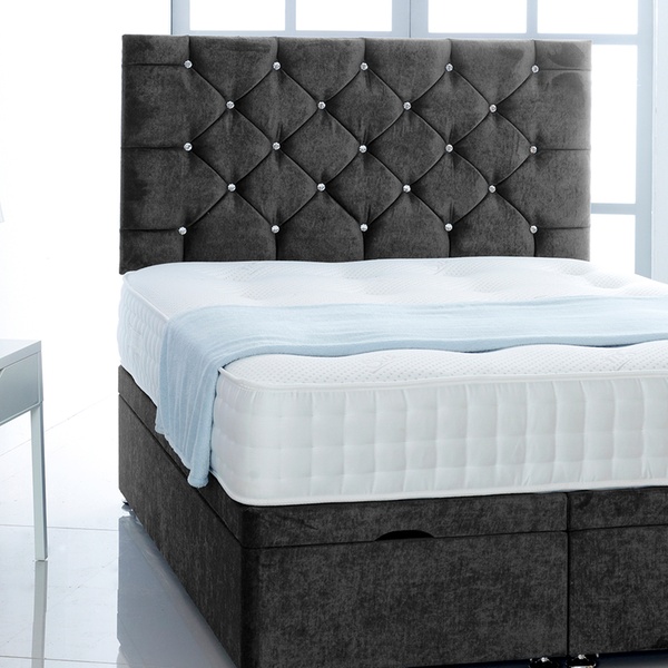 Naples Velvet Ottoman Divan Bed With Mattress and Chesterfield Headboard