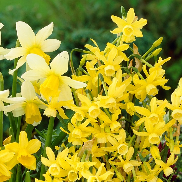 - Miniature daffodil variety featuring a mix of sunny yellow shades