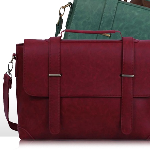 With a timeless, classic design, these satchel bags are as pretty as they are practical. Able to hold a laptop up to 15" x 10" in size they boast an adjustable shoulder strap, and zipped and open inside pockets. The bags feature two front buckles and are finished in faux-leather, in a choice of five colours.
