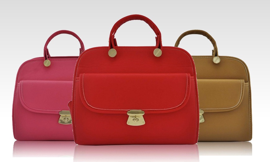 With a smart and versatile design in eleven different colours, these tote handbags can be worn with any outfit, day or night. The bags feature metal detailing, a large front pocket plus zippered and open inside pockets for coins, make-up and accessories.