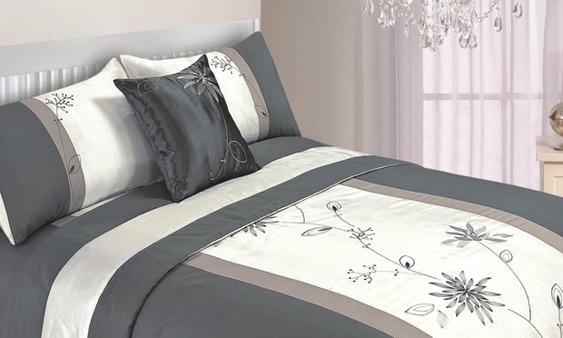 Indulge in these contemporary five-piece bed sets that include two pillow cases, a duvet cover, a runner and a cushion cover