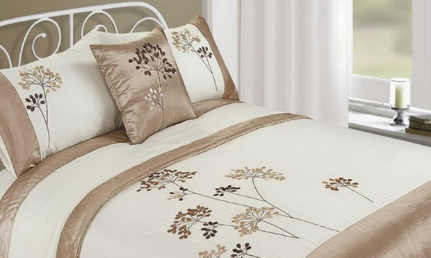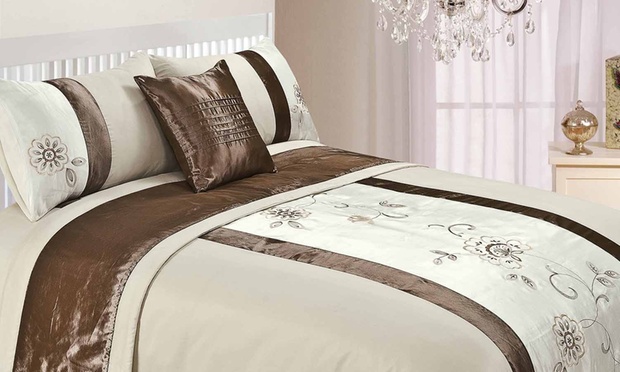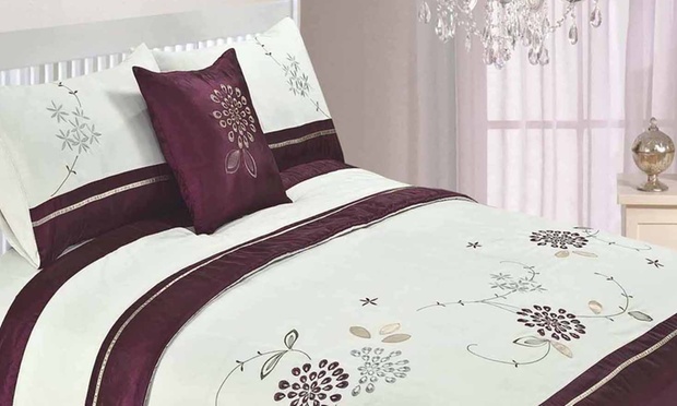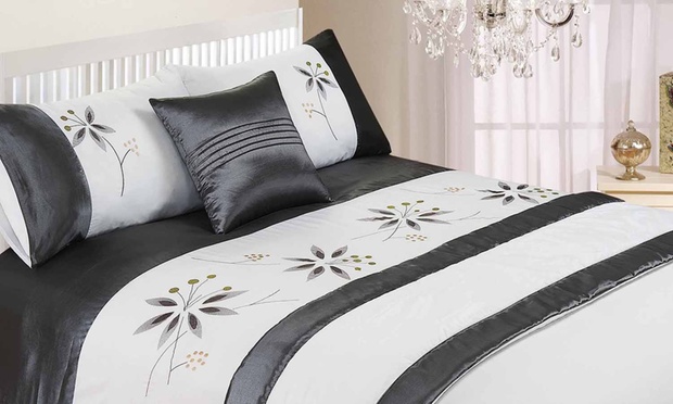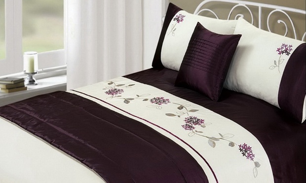 • Five-piece bed set includes two pillow cases, one duvet cover, one runner and one cushion cover