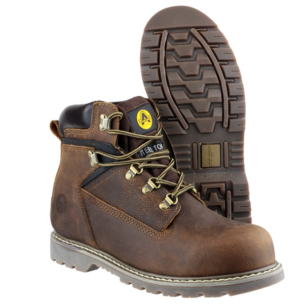 These Amblers industrial safety boots are made of leather, have a durable sole and aim to offer comfort and protection