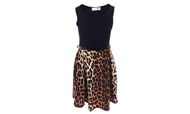 - £8.99 for a minx leopard sleeveless dress with belt in black and brown - 7/8 years