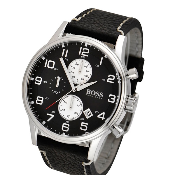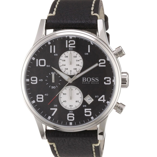 Hugo Boss Gent’s Black Leather Strap 50 m Chronograph Designer Watch (1512569)
