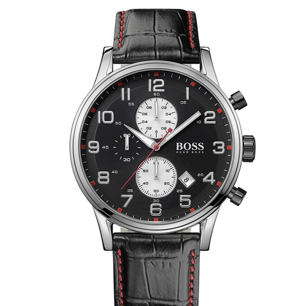 Hugo Boss Gent’s Black Leather Red Stitched Chronograph Designer Watch (1512631)