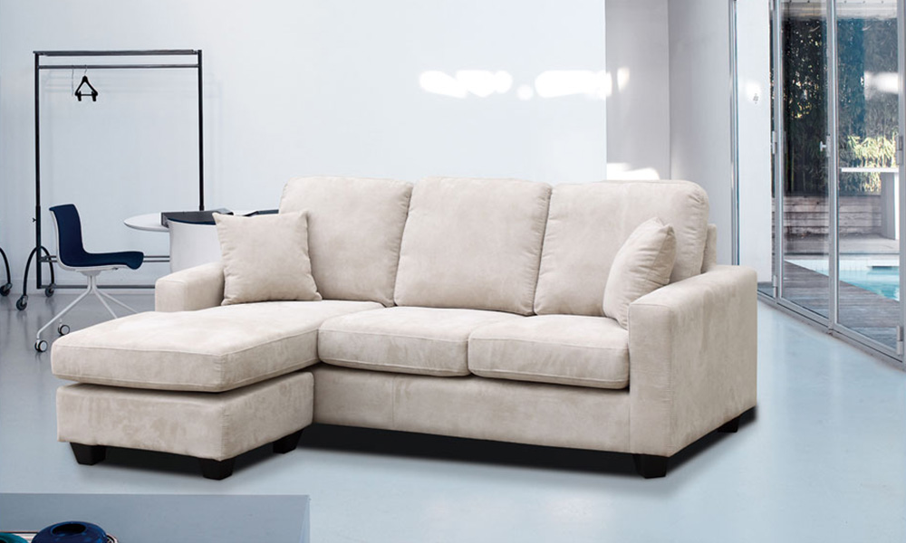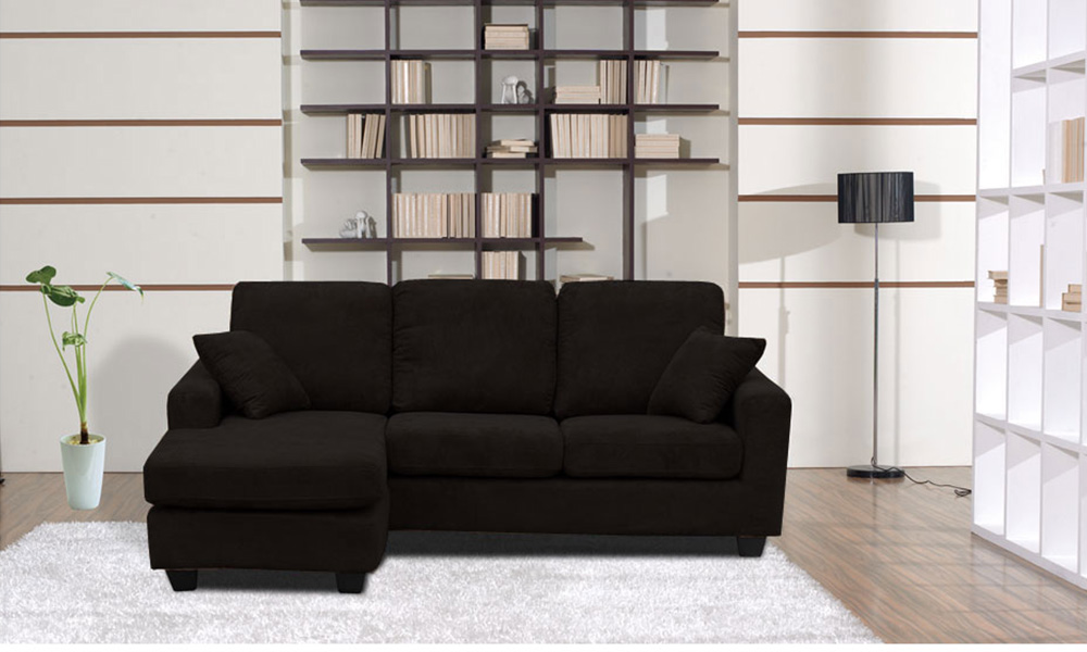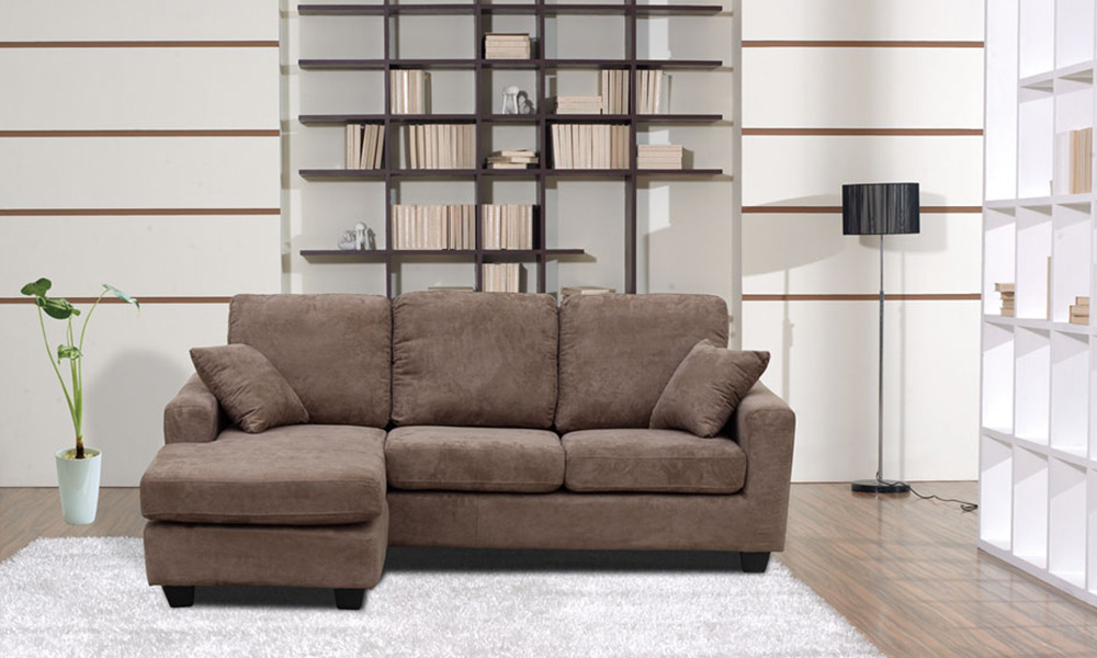 - Faux suede fabric sofa with changeable chaise