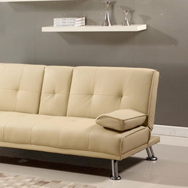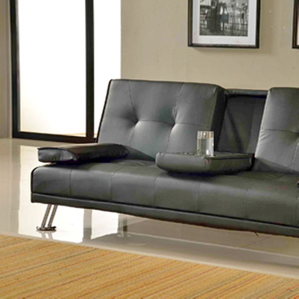 - Sofa bed upholstered in faux-leather with tufted backrests