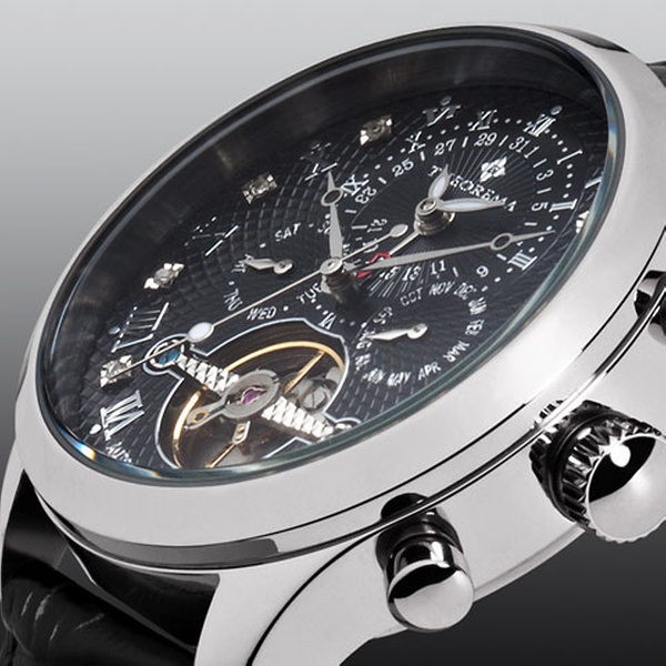 These stylish watches boast a semi-skeleton design with 8 diamonds, complemented by durable Italian leather strap and hardened mineral glass