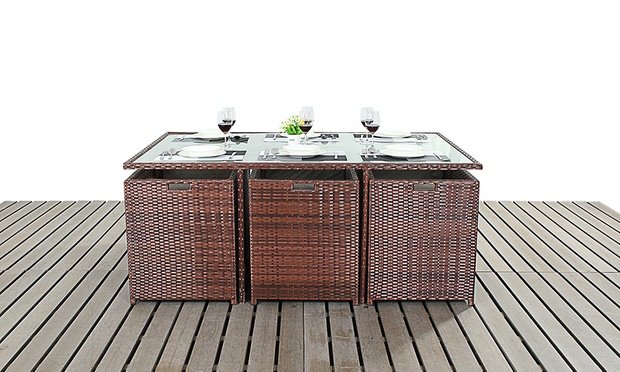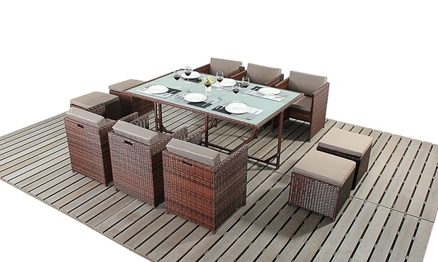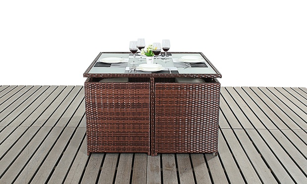 Ideal for saving space, the set becomes a cube when all the chairs are pushed underneath the table; ideal for furnishing any garden or patio