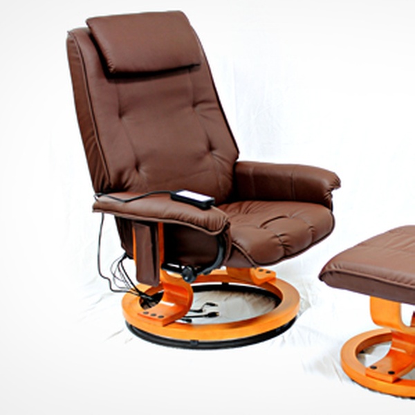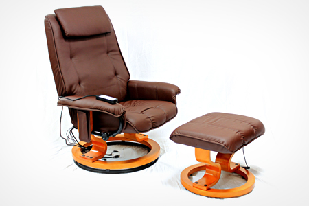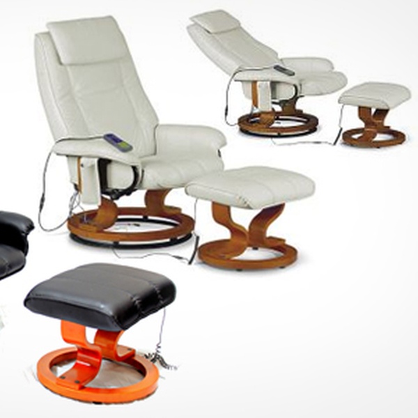 This reclining armchair has an ergonomically designed backrest for comfort, along with six built-in vibration massagers, offering nine different massage patterns and three levels of intensity. A footstool accompanies the chair and features two massagers to soothe away tiredness in tootsies. Finished in faux-leather, the chairs come in a choice of black, cream, or brown to suit any colour scheme.