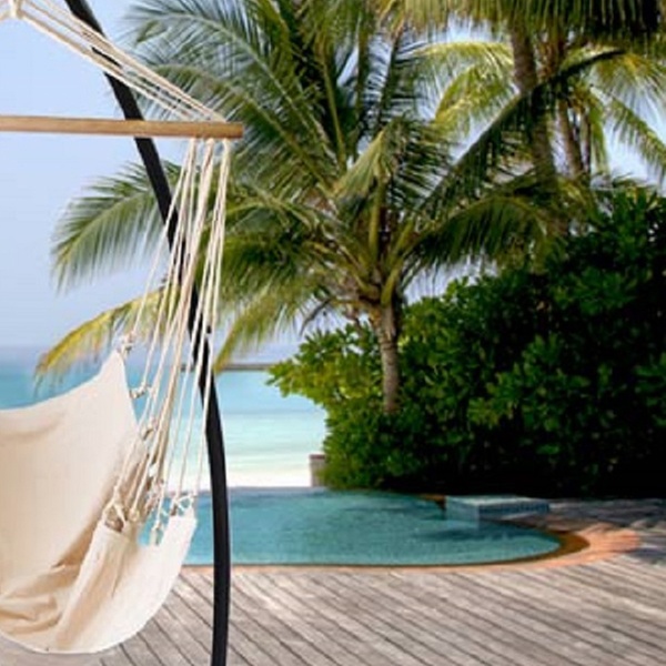 Laidback peeps can convert their yards into alfresco living rooms with this hammock or hanging chair, sturdy enough to support up to 120kg