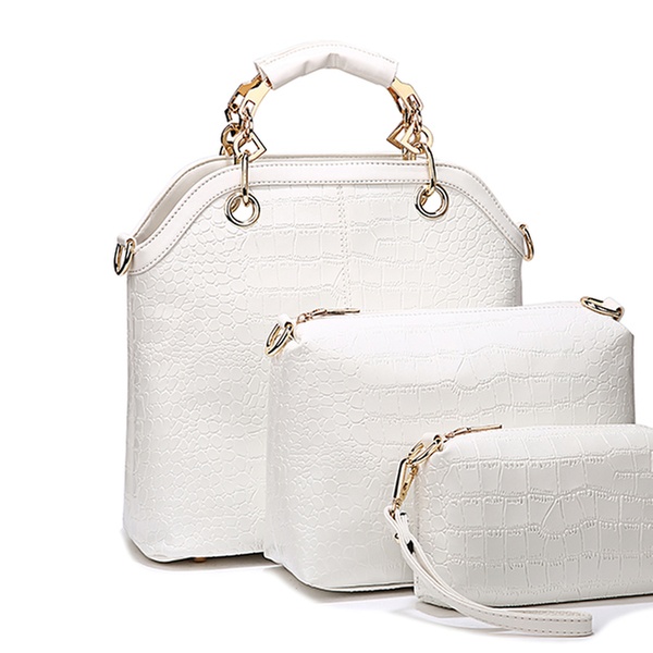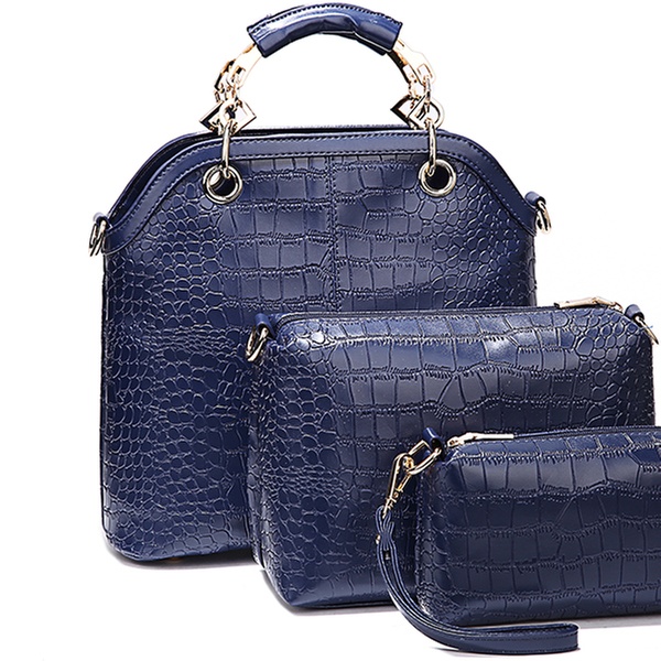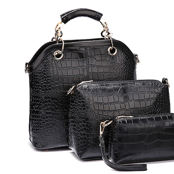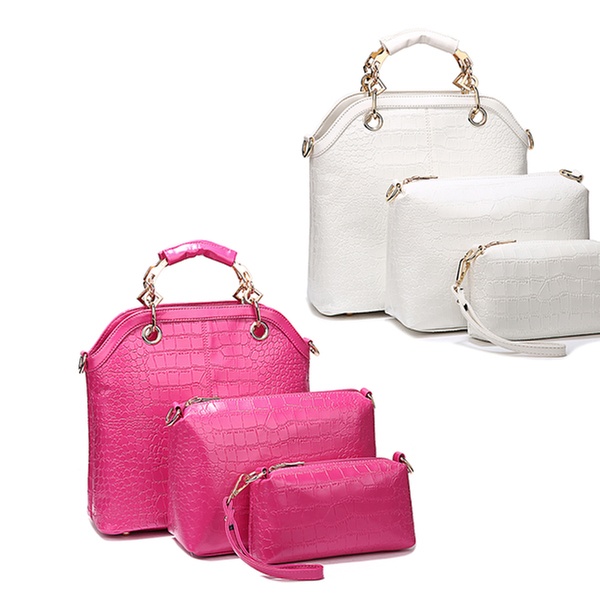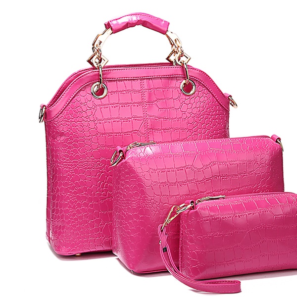 A practical bag set for ladies to carry and store various belongings; with a crocodile effect design to offer a fashionable look