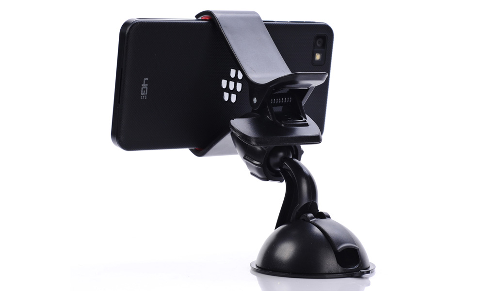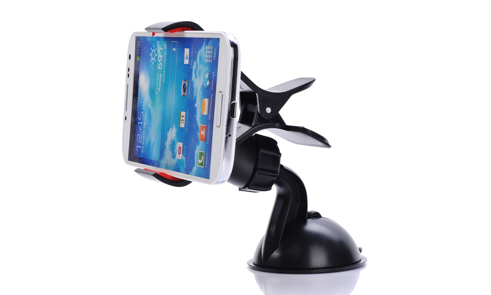 This smartphone and GPS holder grips onto and flat surface including glass and metal and can be adjusted to any angle