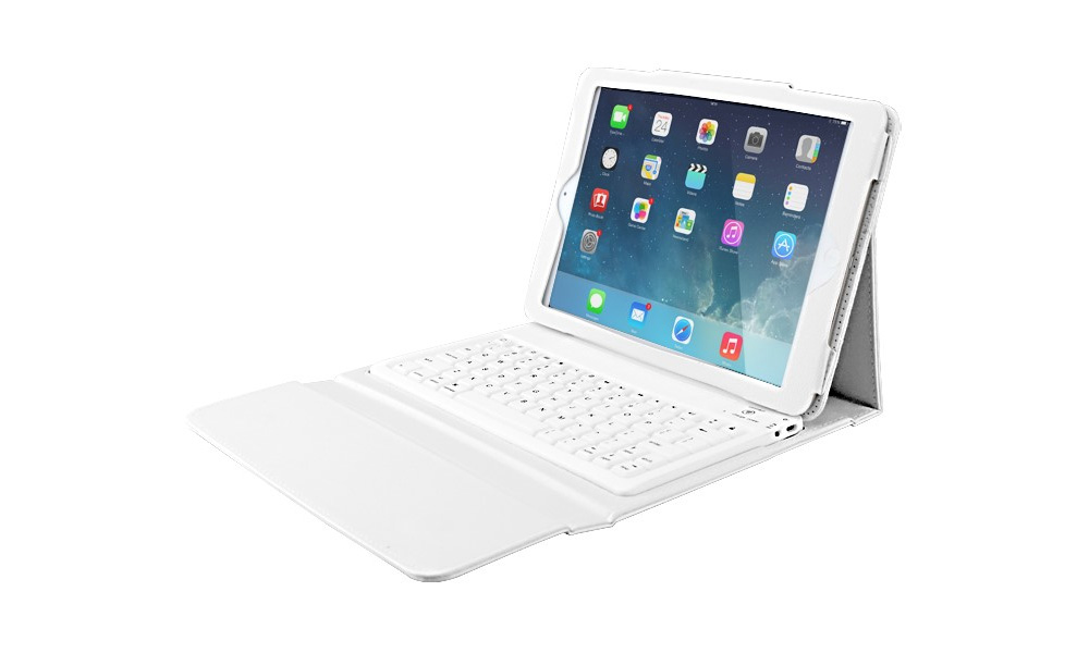 This Case protects iPads from knocks and scratches while doubling as a wireless Bluetooth QWERTY keyboard