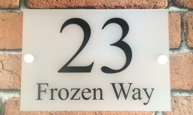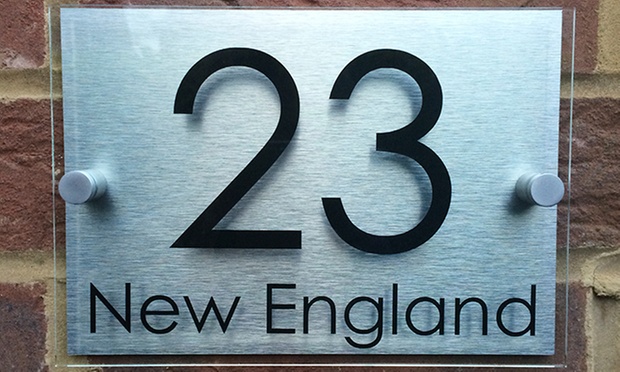 With brushed aluminium and crystal clear glass look acrylic, this sign gives a modern first impression to homes and businesses