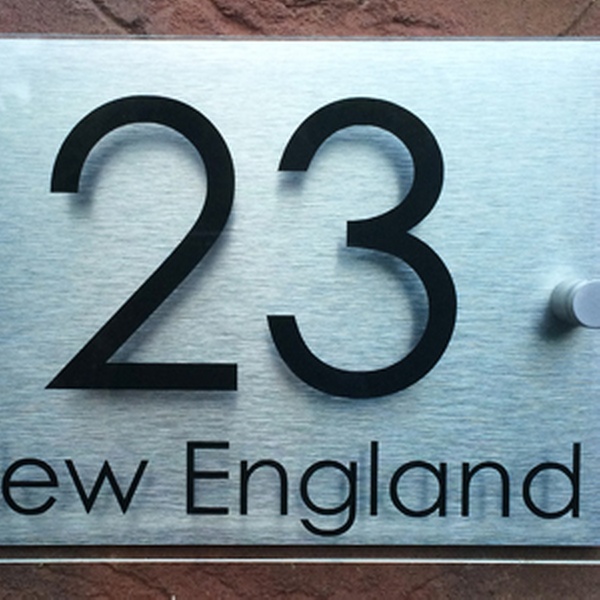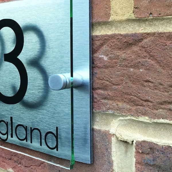 With brushed aluminium and crystal clear glass look acrylic, this sign gives a modern first impression to homes and businesses. The sign has room for four digits and up to 25 characters along with being waterproof and UV-protected to ensure names and numbers are legible come rain or shine.
