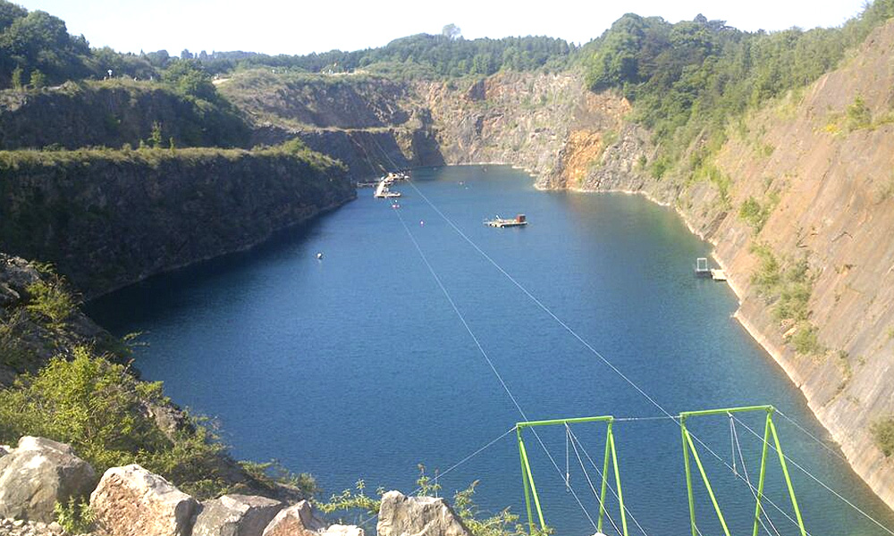 Thrill-seekers can get their fix in high-speed style with this zipping ride. Gliding for almost a kilometre, sliders will be able to take in the flooded quarry 80 metres beneath them as they whizz through the air.