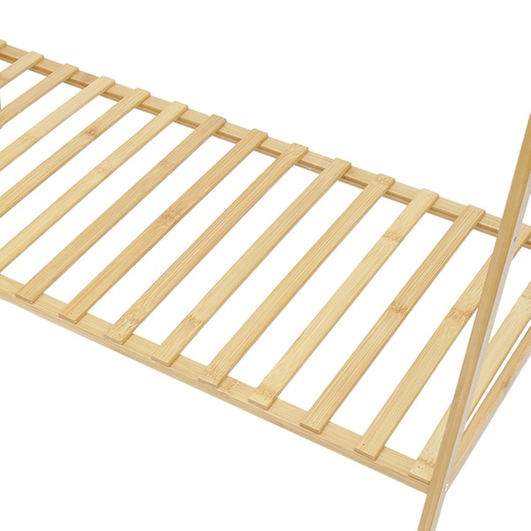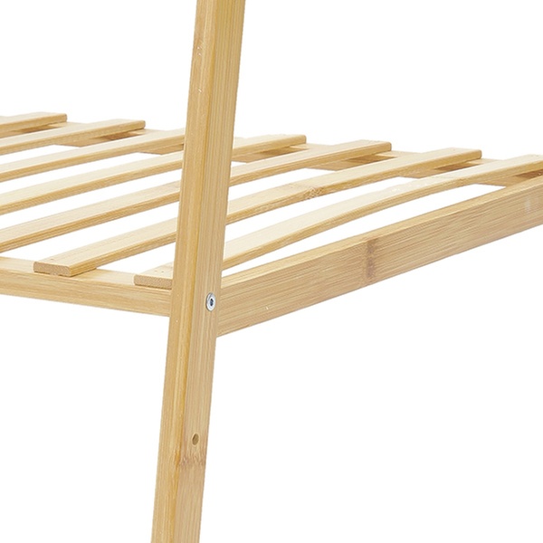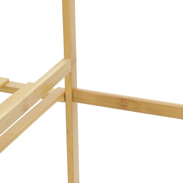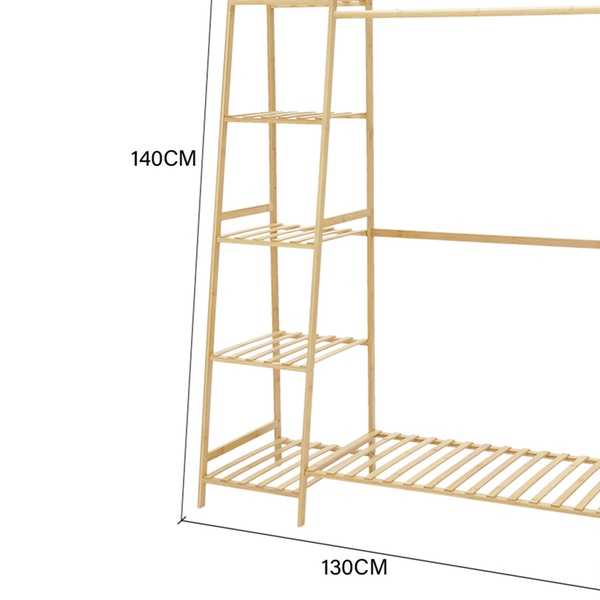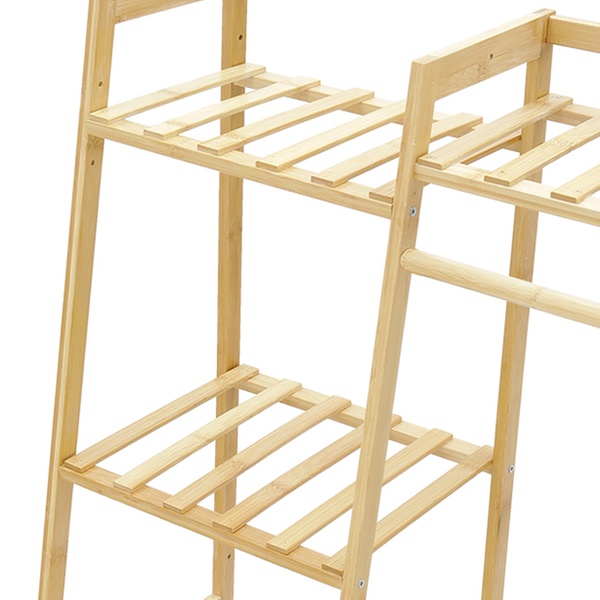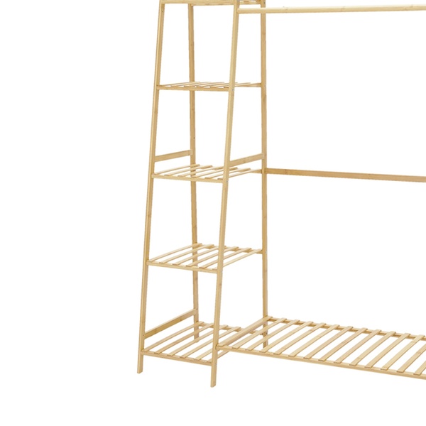 Elevate one's space with a stylish bamboo garment rack, featuring a stable design and 7 versatile shelves for effortless organisation