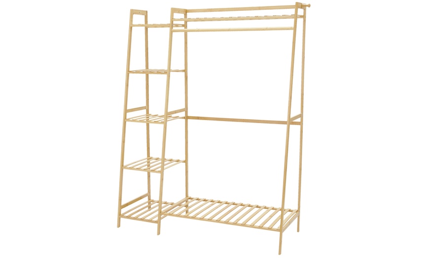 Today's Groupon offers Natural Bamboo Garment Rack with Shelves and Hanging Rod, distributed by Living And Home Limited.