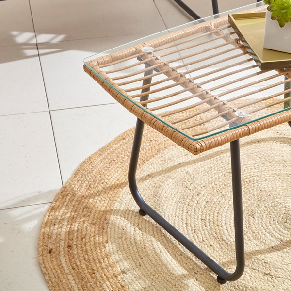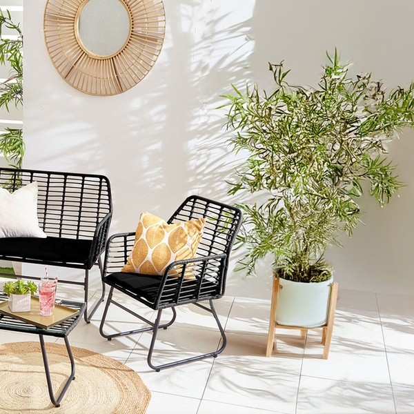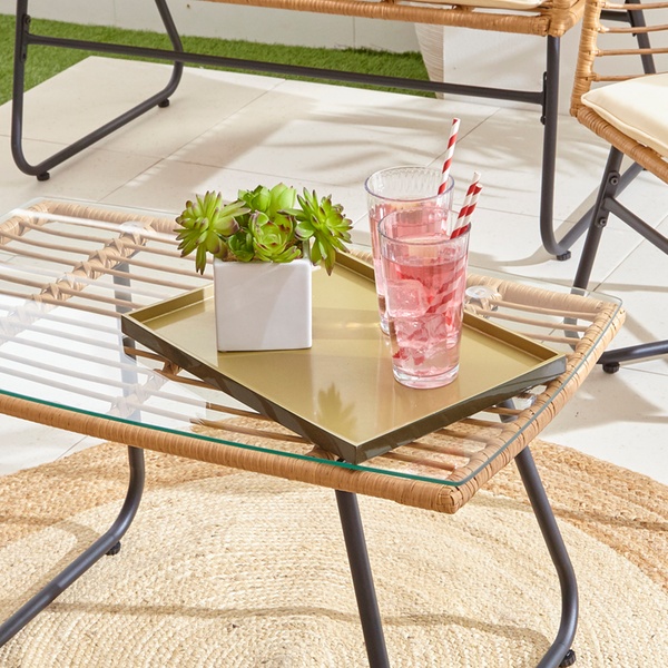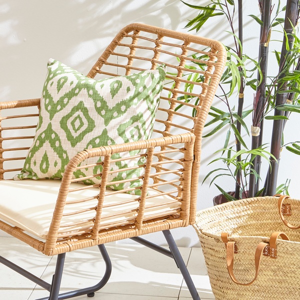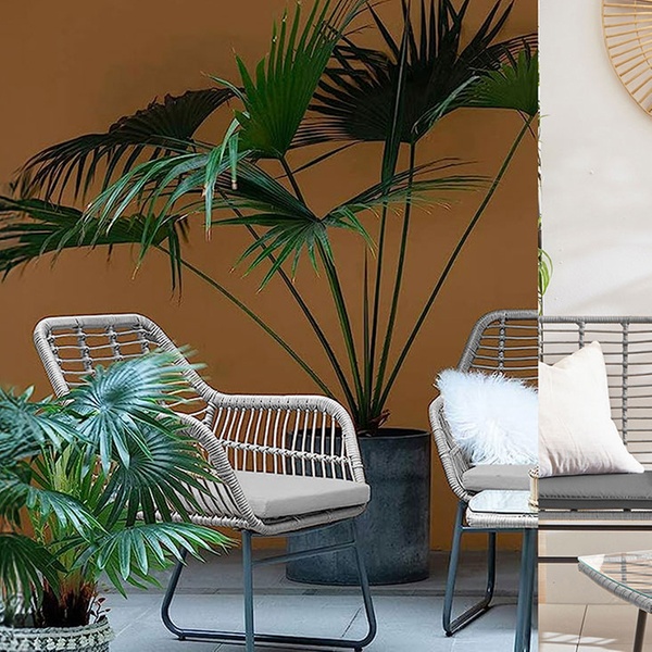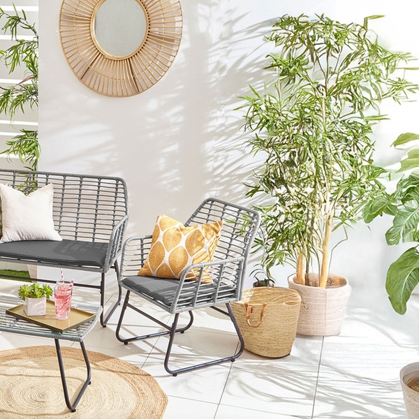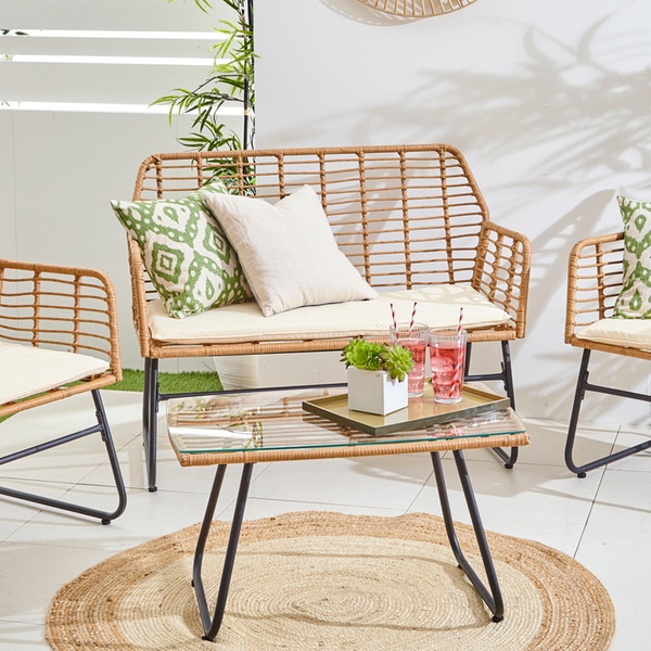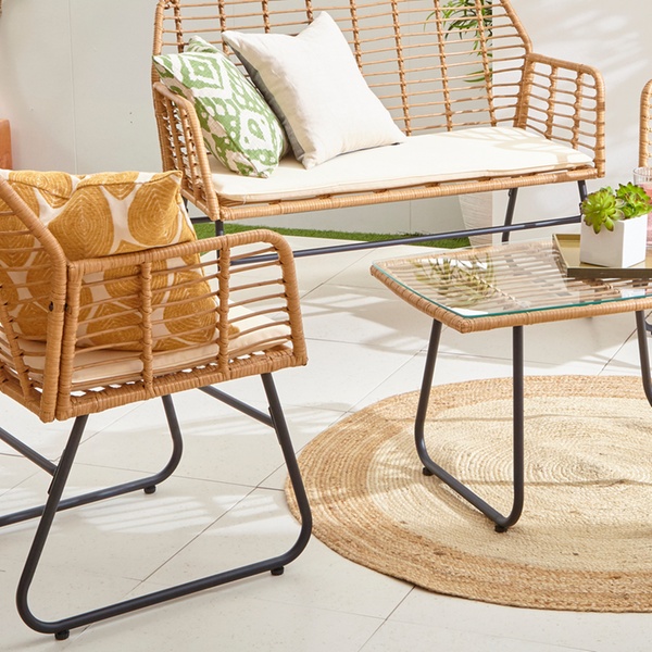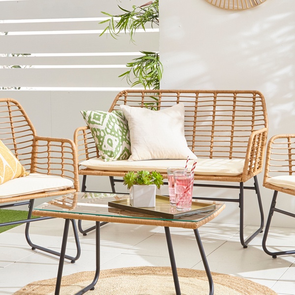 - Material: weatherproof PE rattan with pipe detailing around the edges of the cushion covers